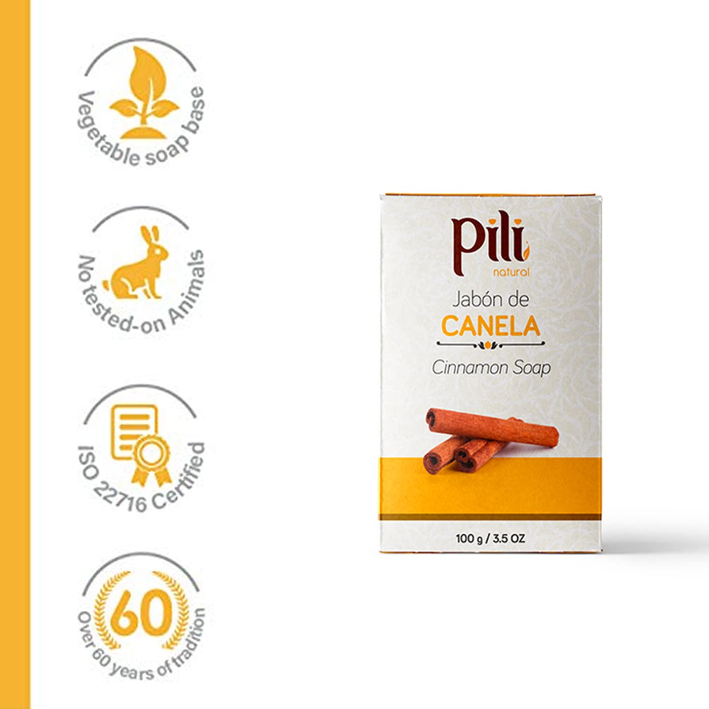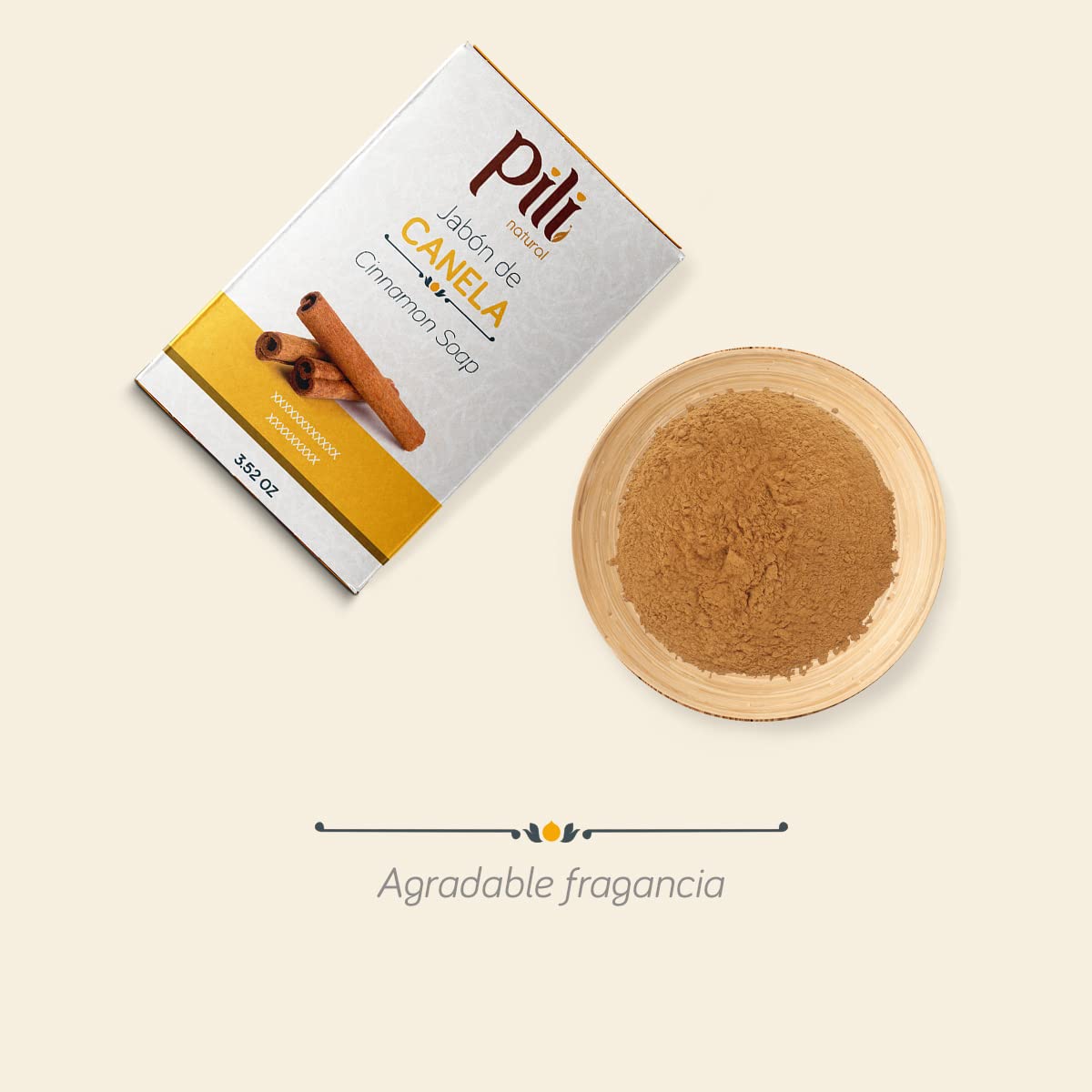 Pili Cinnamon soap bar is a moisturizing, gentle cleanser that has the warm, comforting fragrance of cinnamon. It has a sweet scent and it smells lightly of cinnamon.