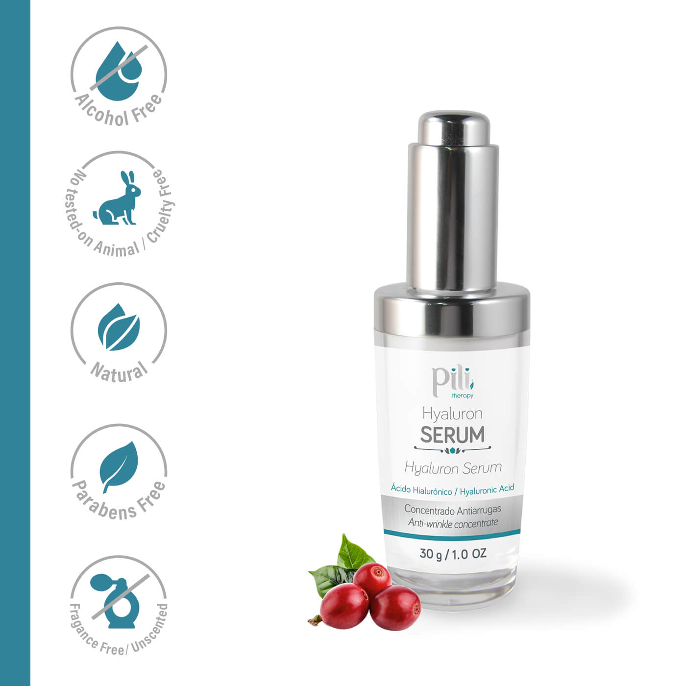 Exclusive blend of Hyaluronic Acid, aloe vera and the extract of the best coffee in the world. A unique master anti-wrinkle formula. Pili Hyaluronic Serum helps you to look younger and radiant skin. Due to the antioxidant and toning action of caffeine, the hydration of aloe vera and the proven anti-wrinkle action of hyaluronic acid.